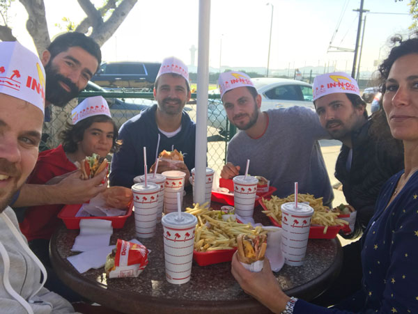 La gente que nos recibió en Los Ángeles nos había advertido que el orgullo del oeste se llama In-N-Out. Además, nos comentaron que apenas pusiéramos un pie en la ciudad tras bajar del avión íbamos a ir a comer ahí. Y así fue. Llegamos a las 11 de la mañana y al salir, fuimos a un local que estaba a metros del aeropuerto.