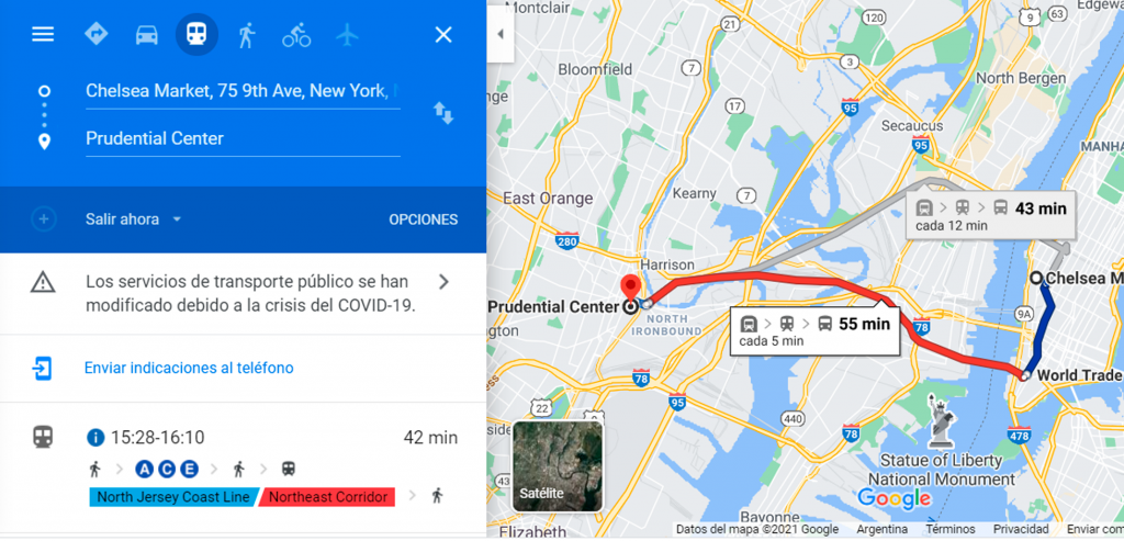 Tomamos el subte hasta The Oculus o alguna estación cerca (en este caso Chambers Street) y de ahí caminar. En The Oculus tomar The Path (es como un tren que pasa por debajo del río) y bajar en Newark Penn Station y de ahí caminar.